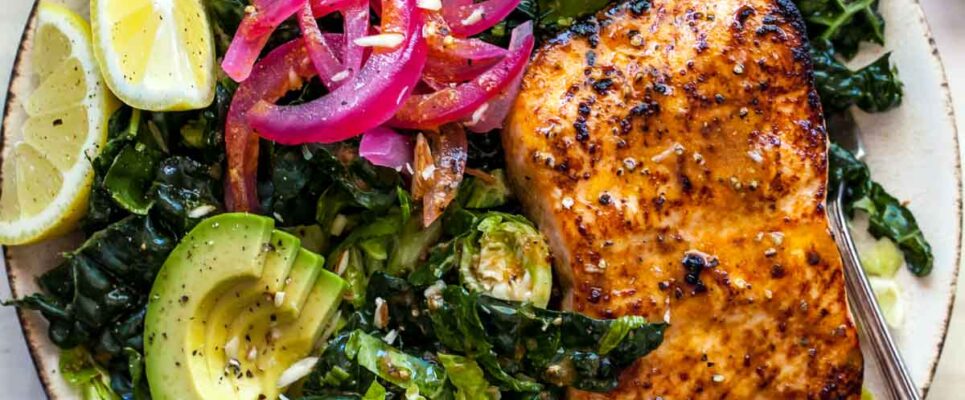 VEGAN VERSION: Replace the salmon with grain-free tempeh, hemp tofu, or a cauliflower “steak,” a ¾- inch-thick cauliflower slice seared over high heat in avocado oil until golden brown on both sides.
