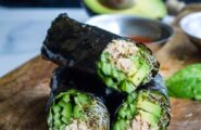 Chicken-Arugula-Avocado Seaweed Wrap with Cilantro Dipping Sauce Snack
